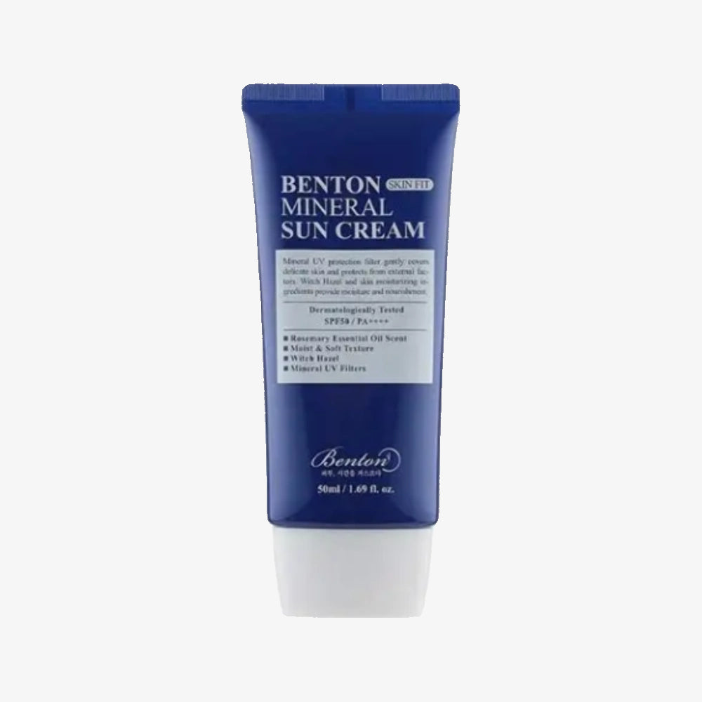 BENTON Skin Fit Mineral Sun Cream 50ml NPN is a gentle, physical sunscreen designed for sensitive, acne-prone, and barrier-damaged skin. As a mineral-based formula, it uses zinc oxide (19%) —a broad-spectrum UV filter (UVA/UVB protection, SPF50+ PA++++ ) that sits on top of the skin to reflect harmful rays, avoiding irritation caused by chemical sunscreen ingredients penetrating the skin. Its "Skin Fit" texture is lightweight and non-greasy, with a fast-absorbing, matte finish that won’t leave a white cast (a common issue with mineral sunscreens) and won’t clog pores—suitable for daily use and under makeup. The formula is enriched with centella asiatica extract to soothe sun-induced redness and irritation, hyaluronic acid to replenish moisture lost from sun exposure, and niacinamide to refine skin texture and enhance barrier resilience. It is free of parabens, alcohol, mineral oil, artificial fragrances, and colorants, and holds the NPN (Natural Product Number) certification, ensuring compliance with Canada’s strict standards for natural health products.