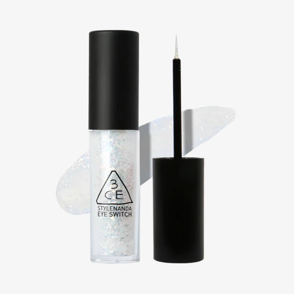 3CE Eye Switch Throbbing is a trendy eye makeup product focusing on fresh and dewy pearlescent effect. It contains multi-color holographic fine glitters, presenting a transparent and unexaggerated shiny makeup effect on the eyes. It can be used as a brightening color to embellish the inner corner of the eyes and the lower lash line, or thinly applied on the entire eyelid to create an atmospheric eye makeup. The formula is added with shea butter and tocopheryl acetate, which moisturizes the eyes while applying makeup and reduces the irritation of glitters to the eye area. The ultra-fine brush head can accurately outline the details of eye makeup, which is easy for beginners to use. The texture is adherent without powder flying and long-lasting without makeup removal, making it a cost-effective choice for creating bright eye makeup for daily commute and parties.