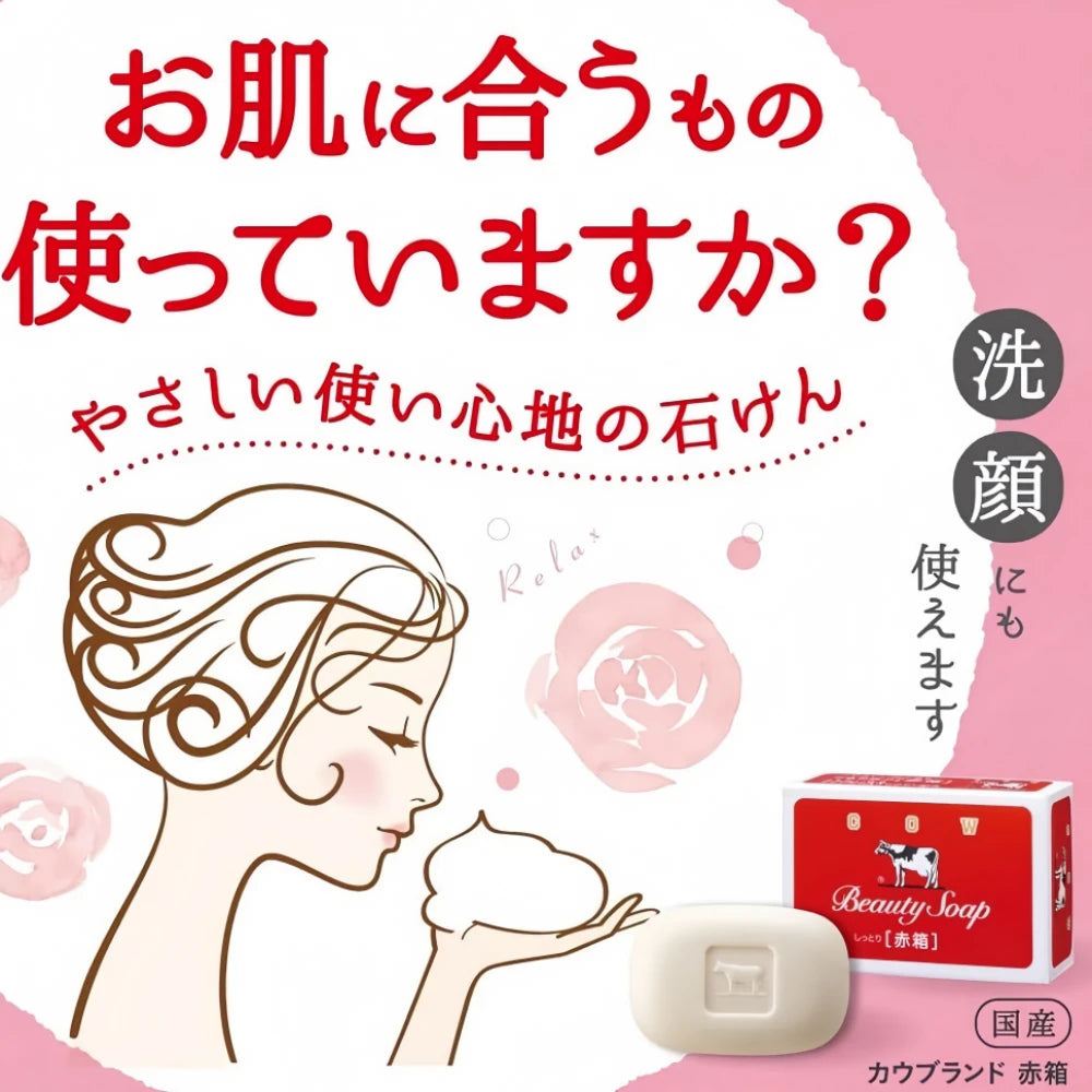 COW BRAND Bouncia Beauty Soap Red is a classic best-selling product of the brand, highlighting "mild cleansing + deep moisturizing". Added with natural milk essence, whey protein and plant moisturizing factors, it replenishes skin moisture during cleansing, avoiding tightness and dryness after washing; the mild surfactant formula produces dense and delicate foam, which can deeply remove dirt and excess oil while protecting the skin's natural barrier. The red variant has a long-lasting rich and elegant floral scent, and the firm soap body is durable. Suitable for facial cleansing, body bathing and other scenarios, it can be used by the whole family, making it an essential cost-effective daily chemical product with both cleansing power and moisturizing effect.