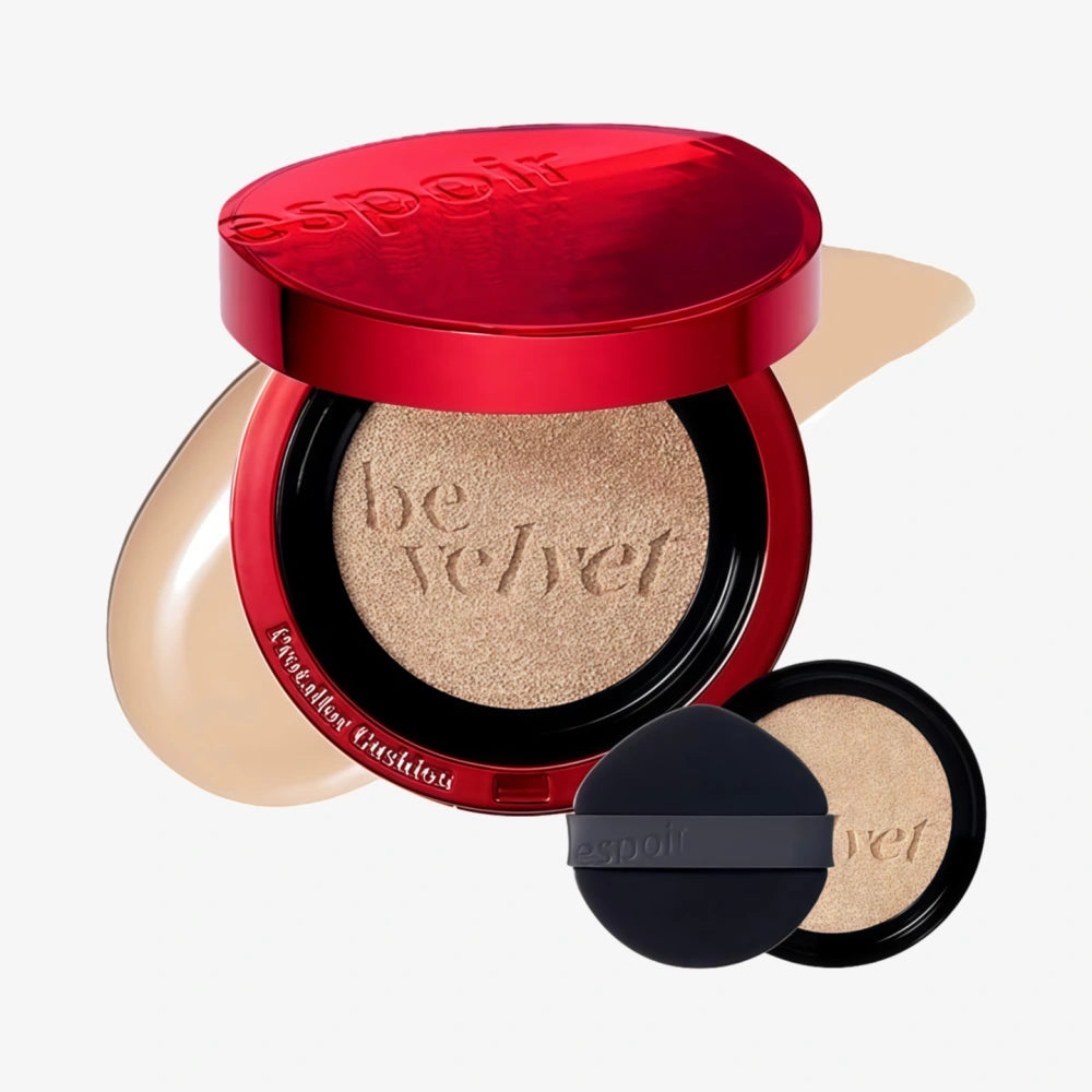ESPOIR Pro Tailor Be Velvet Cover Cushion New Class 25 Tan est un fond de teint cushion mat velouté haut de gamme, version améliorée. Sa texture légère et crémeuse fusionne parfaitement avec la peau, offrant une couvrance moyenne à totale sans effet masque. La teinte 25 Tan s'accorde aux teints naturellement hâlés, pour un fini « seconde peau ». Formulé avec des agents régulateurs de sébum et des ingrédients longue tenue, il absorbe efficacement l'excès de sébum, résiste à la décoloration et au transfert, et conserve un fini mat velouté jusqu'à 12 heures. Son applicateur cushion avec houppette douce assure une application précise et un estompage uniforme, camouflant naturellement les pores et les imperfections. Il est fourni avec une recharge pour une utilisation prolongée, alliant luxe, praticité et résultats professionnels – idéal pour celles et ceux qui recherchent un maquillage mat naturel et longue tenue.