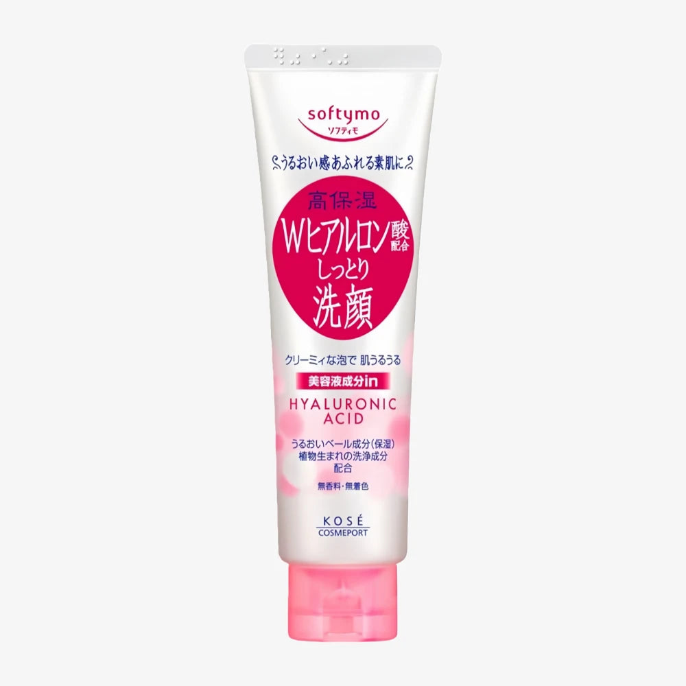 La mousse nettoyante Softymo à l'acide hyaluronique de KOSE (150 g) possède une texture onctueuse qui élimine efficacement les impuretés et la poussière en profondeur. L'acide hyaluronique et l'extrait de soja fermenté préservent l'hydratation et la fermeté de la peau. Elle démaquille également en douceur. Sans colorant ni parfum, elle convient à tous les types de peau.