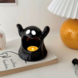 Cendrier/porte-bougie chauffe-plat multifonction en céramique - Joli fantôme noir
