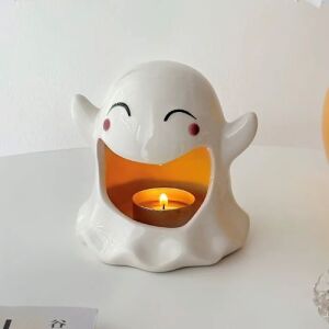 Cendrier/porte-bougie chauffe-plat multifonction en céramique - Joli fantôme souriant