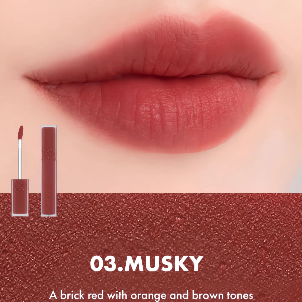 This No.03 Musky lip tint is a popular shade in ROMAND's Blur Fudge series, with a 5.5g capacity that balances portability and practicality. Its dense mousse texture is smooth on the lips and can quickly transform into a high-end velvet matte makeup effect. The low-saturation musky brown shade has a retro and gentle temperament, which can be easily controlled by people with yellow skin and is suitable for various scenarios such as daily commute and autumn and winter dates. The formula adds moisturizing ingredients to get rid of the drying problem of traditional matte lip tints, and has excellent color locking ability, which is not easy to stick to cups or fade. It can be applied evenly without complicated skills, making it a cost-effective essential item for creating atmospheric makeup.