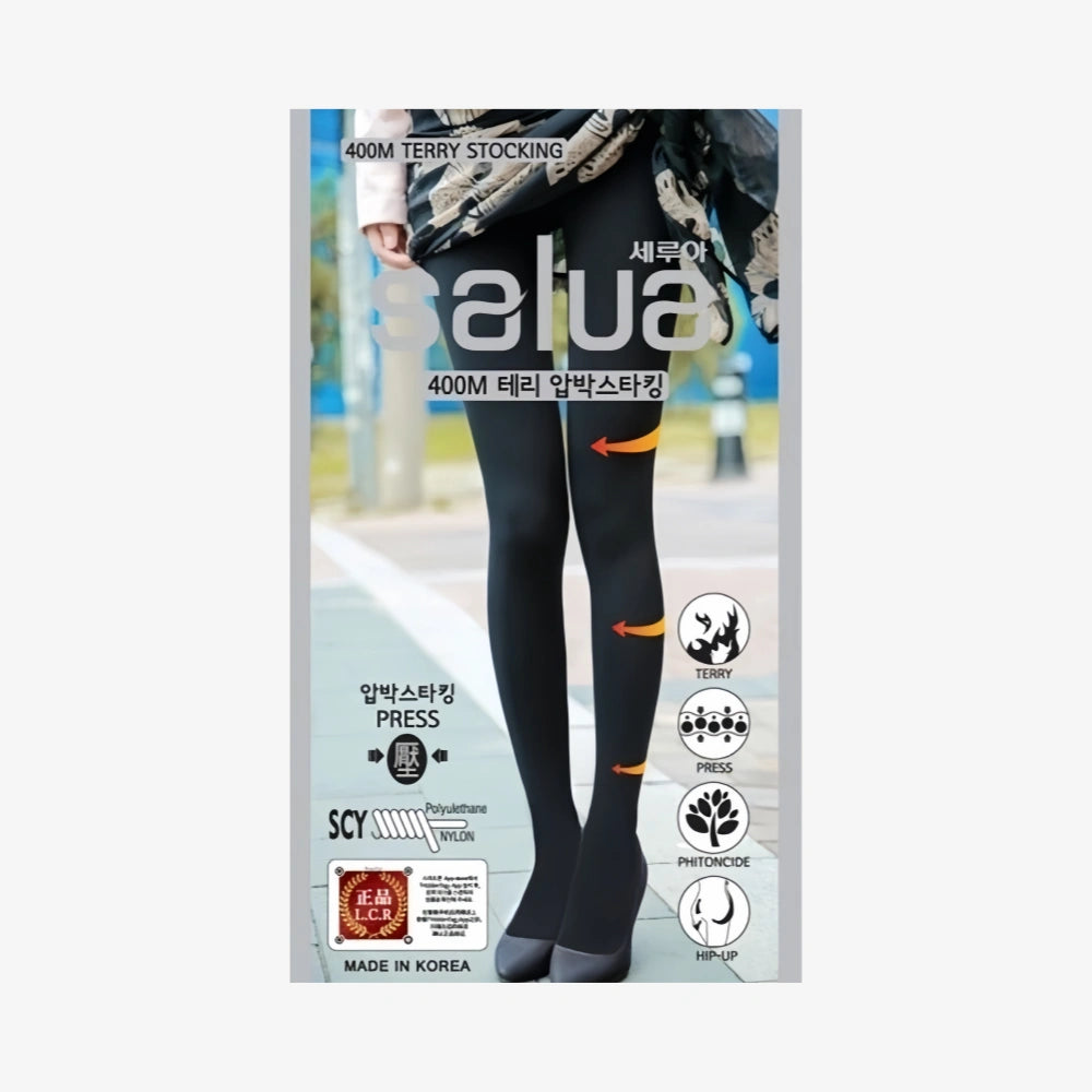 SALUA Terry Stocking 400M is a must-have item for Korean-style early winter body shaping and warmth retention. Adopting South Korea's exclusive terry knitting technology, the 400M thickness can cope with low temperatures of 5-15℃. The terry inner layer is skin-friendly and locks in temperature, while the outer high-elastic fabric achieves micro-pressure shaping, modifies leg lines and prevents leg soreness caused by long sitting or standing. Added with cypress wood ingredients, it balances warmth retention and skin soothing; the one-size-fits-all design is suitable for most body shapes, with full-foot and footless styles available. Whether for daily commuting with trousers or mild outdoor trips, it can meet the triple needs of warmth, shaping and comfort, making it a practical choice for early winter leg care.