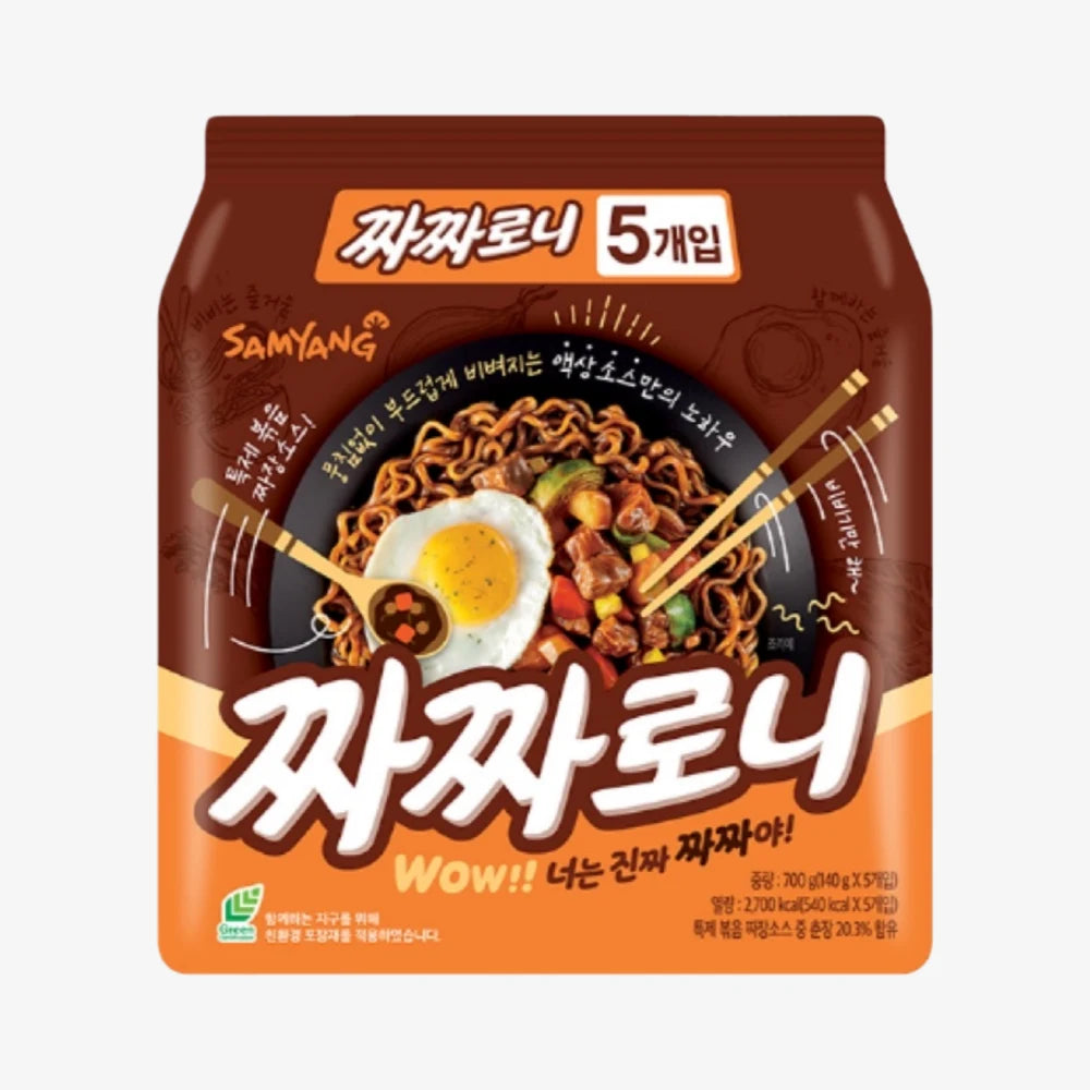 SAMYANG Chacharoni (5 bags) is a classic non-spicy instant noodle product of SAMYANG FOOD, crafted for consumers who love authentic Korean jajangmyeon and pursue convenient and delicious instant food. Different from the brand's spicy Buldak Ramen, this product is a mellow and savory non-spicy Korean jajangmyeon, adopting high-quality wheat flour to make the noodle cake through a special rolling process. The noodles are chewy and elastic, not easy to break when cooked, and have a strong wheat fragrance. The matching special jajang sauce pack is made of carefully selected black soybean paste, vegetable oil, onion, garlic and other raw materials, through slow stirring and blending, with a thick and smooth texture, rich and mellow bean paste fragrance, and a salty and fresh taste without greasiness. The product retains the authentic taste of traditional Korean jajangmyeon, and the cooking method is simple and fast, which can be eaten in a few minutes. The 5-bag family pack is suitable for family meals, lazy meals, late night snacks and other scenes, and is a representative of Korean classic non-spicy instant noodles with chewy noodles, rich sauce and authentic taste.