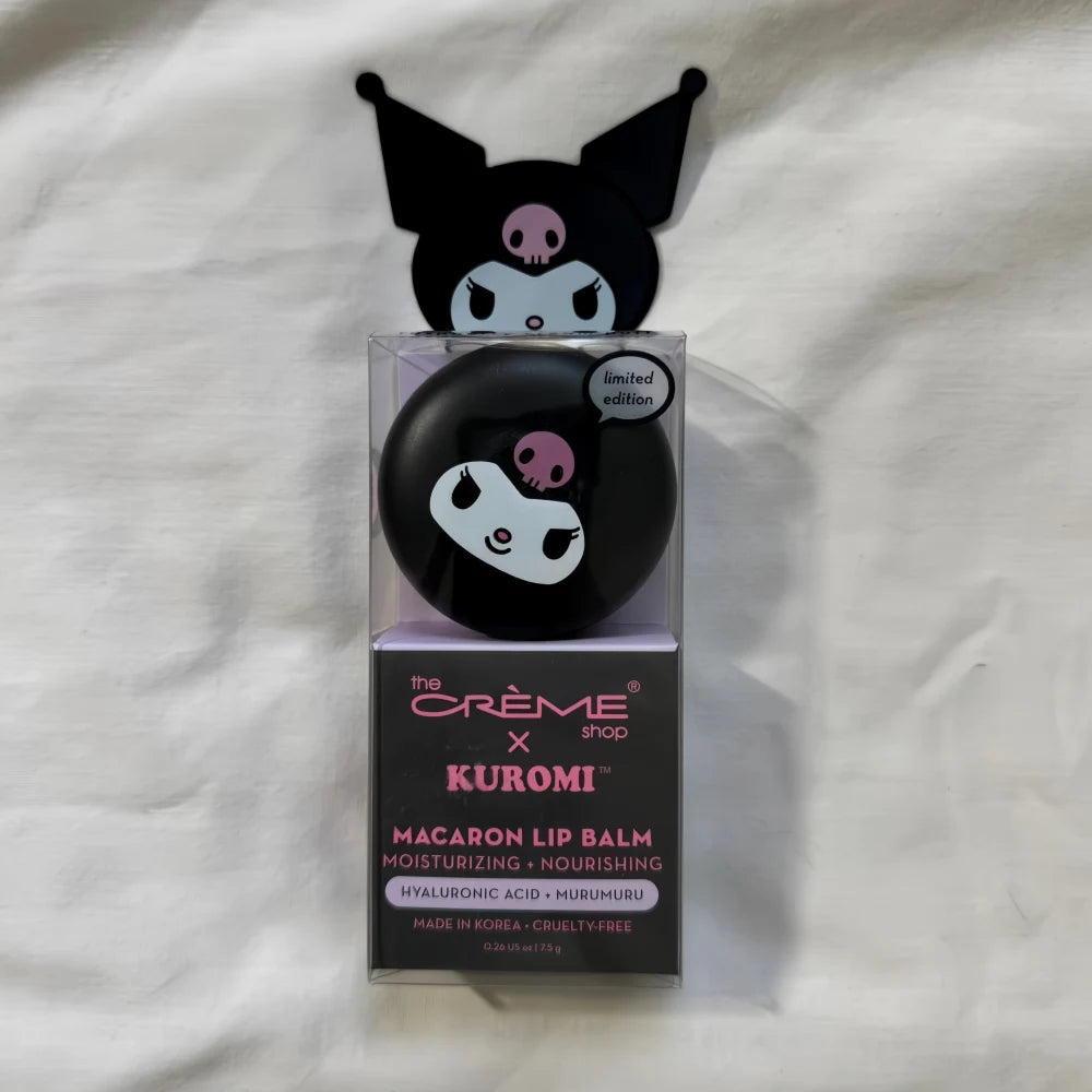 This Kuromi co-branded macaron lip balm is a popular lip care product of THE CREME SHOP, combining appearance and practicality. The macaron shape with Kuromi's classic black-pink design is cute and eye-catching; the blueberry smoothie fragrance is fresh and natural, bringing a pleasant user experience. Core ingredients include shea butter and coconut oil to deeply moisturize the lips, sodium hyaluronate to replenish moisture, and vitamin E to repair dry lip lines. The soft and silky texture is light and non-greasy on the lips, quickly forming a moisturizing film to relieve dryness and peeling. The formula is alcohol-free, fragrance-free (scent derived from food-grade fragrances) and mineral oil-free, suitable for daily moisturizing, pre-makeup priming and other scenarios, making it a lip care product with both appearance and strength for young consumers.