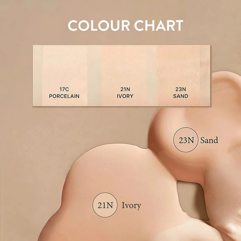 Le fond de teint cushion TIRTIR Mask Fit Aura est un fond de teint haute performance conçu pour un teint impeccable et un effet flouté. Sa formule légère et modulable offre une couvrance moyenne à totale, camouflant efficacement les imperfections et lissant le grain de peau. Enrichi en agents illuminateurs, il apporte un éclat doux et lumineux pour un teint naturellement radieux. Ce fond de teint cushion hydrate et nourrit également la peau, assurant confort et hydratation tout au long de la journée. Idéal pour celles et ceux qui recherchent un teint soyeux et éclatant, longue tenue.