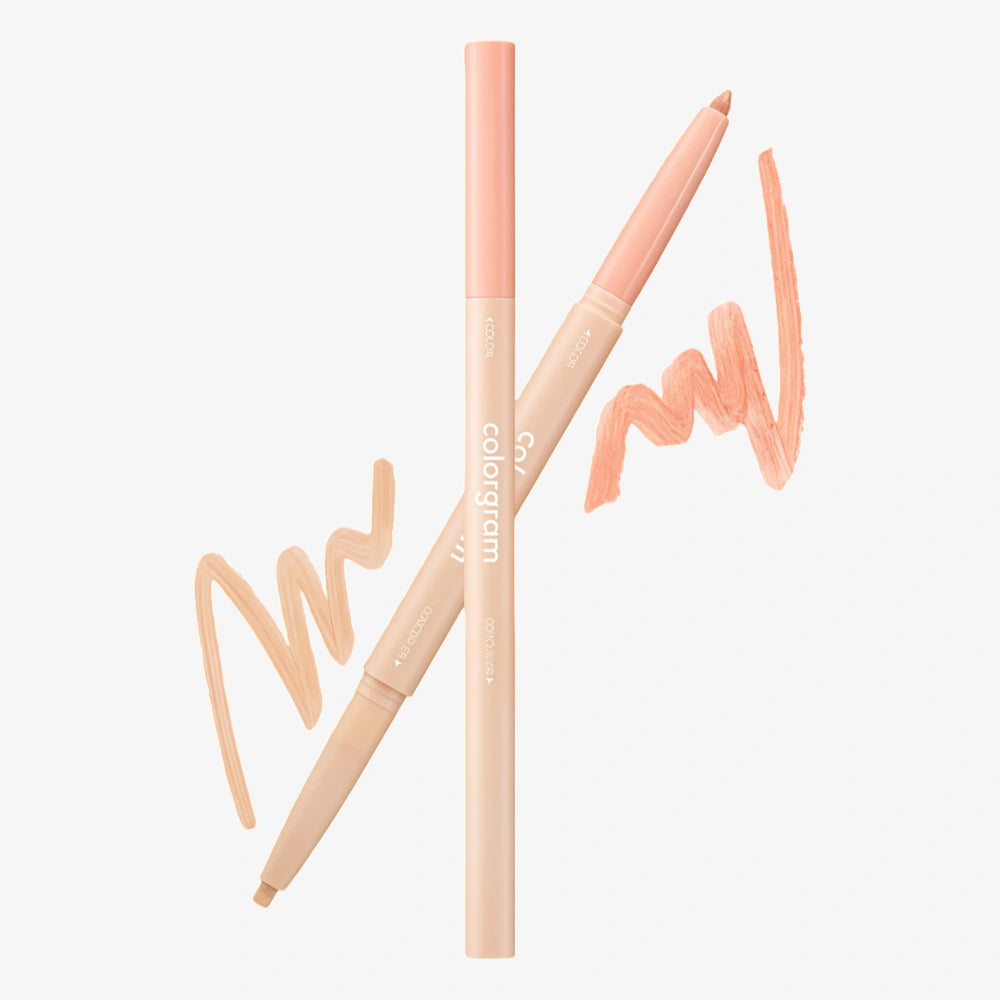 The COLORGRAM All In One Aegyo-Sal Maker is a multi-functional pencil specifically designed to define and highlight the "aegyo-sal" – the small, cute fat pocket under the eyes – a popular Korean beauty trend. Shade 04 Peach is a warm peach tone used for shading and contouring directly under the eye bag to create depth and make it appear more prominent and rounded. It typically has a creamy, blendable formula on one end for shading and a shimmery highlighter on the other end to accentuate the area, all in one convenient product.