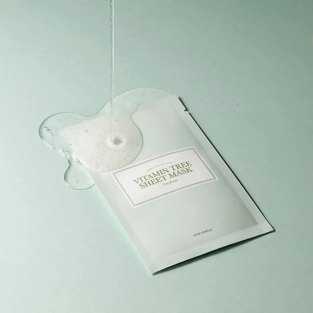 IM FROM Vitamin Tree Sheet Mask is rich in fresh vitamin tree leaf water, which can provide a large amount of moisture and rich vitamins to the skin. Its unique composition is especially beneficial for hyperpigmentation and dull skin. The mask uses a waterhole - structured material that can closely fit the skin and lock in the light essence, allowing the skin to absorb it without stickiness, suitable for sensitive or dehydrated skin.