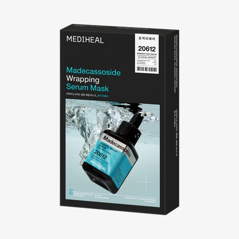 MEDIHEAL Madecassoside Wrapping Serum Mask is a repairing and soothing sheet mask. Infused with high-concentration madecassoside and Centella Asiatica extract, it effectively calms sensitive, irritated, and post-treatment skin, reduces redness, and strengthens the skin barrier. The soft, breathable sheet fits closely to the skin for better essence absorption. With hyaluronic acid and panthenol, it provides deep hydration and improves skin resilience. The mild, non-irritating formula is suitable for daily care, leaving skin calm, smooth, and healthy. This 10-sheet pack is ideal for consistent repair and soothing skincare.