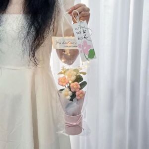 Realistic Crochet Flower Bouquet with Decorative Pot -Pink