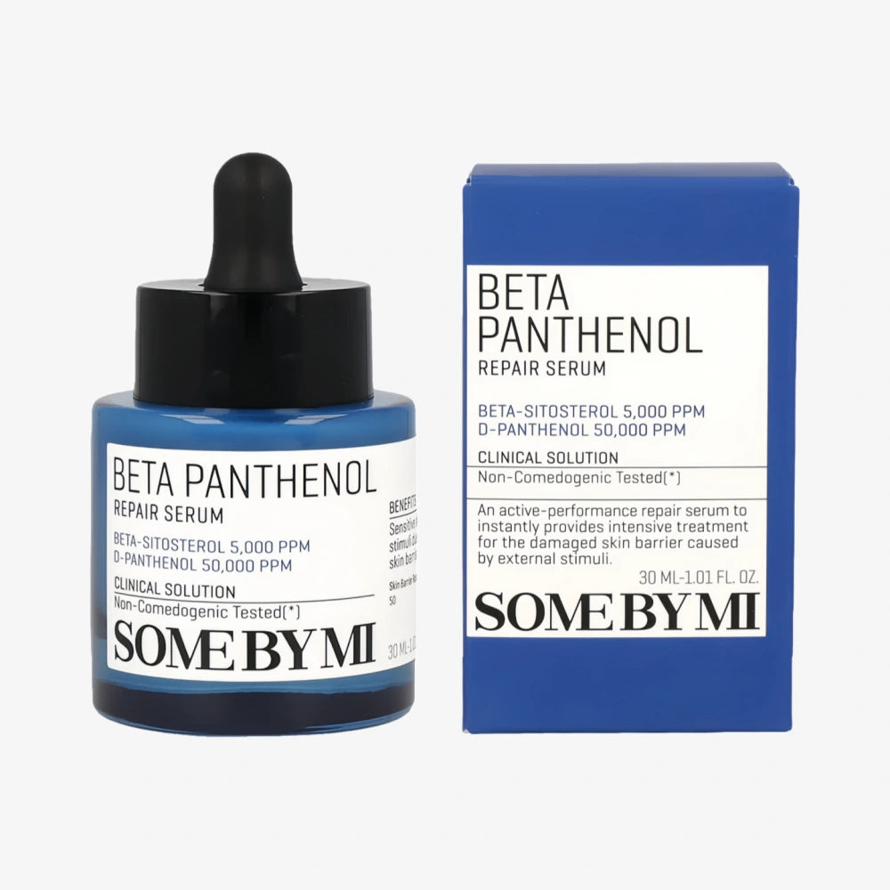 The SOME BY MI Beta Panthenol Repair Serum is a soothing and hydrating serum formulated with beta-glucan and panthenol (Vitamin B5) to deeply nourish and repair the skin. This lightweight serum helps to strengthen the skin's barrier, improve moisture retention, and calm irritated or stressed skin. It provides intensive hydration while promoting skin healing and reducing redness, making it ideal for sensitive or compromised skin. The serum absorbs quickly without leaving a greasy residue, leaving the skin feeling soft, smooth, and replenished. Perfect for daily use, it helps to restore balance and support healthier, more resilient skin. Suitable for all skin types, especially dry or sensitive skin.
